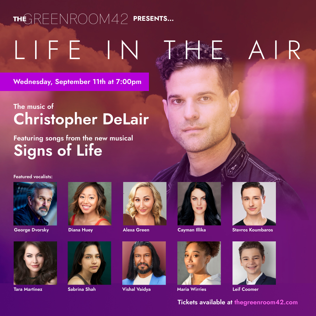 Astro Lab Productions announces the debut of writer and composer Christopher DeLair. He will be joined by nearly a dozen musicians and artists to present Life In The Air: The Music of Christopher DeLair, an evening of his original theatrical and contemporary pop music featuring songs from his musical Signs Of Life.
